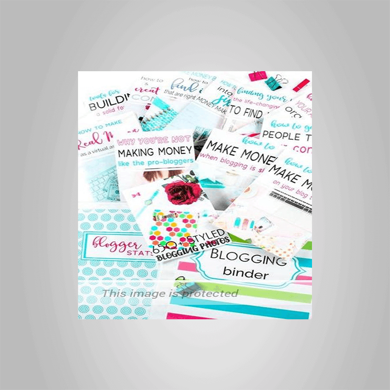 This course is the best of the best. No wasting our time. This is a get-your-blog-soaring-now type of bundle we don’t want to miss. This is a compilation of 11 books, 2 binders, and 650+ blogger photos (commercial license).